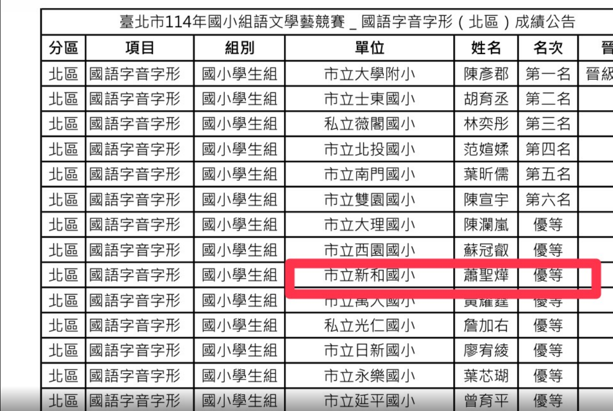捷報~114年度臺北市多語文學藝競賽601蕭聖燁榮獲國語字音字形北區優等!!!感謝怡秀老師辛苦指導、也感謝班級導師雅婷老師的鼓勵支持❤️