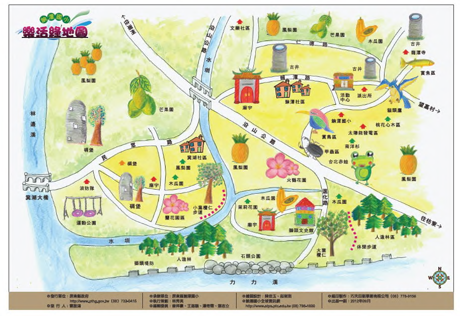 3. 圖例(地圖中代表各項地點,如:自然生態、人文歷史、日常生活、體驗活動…等之圖案,可自行創設新圖例)。