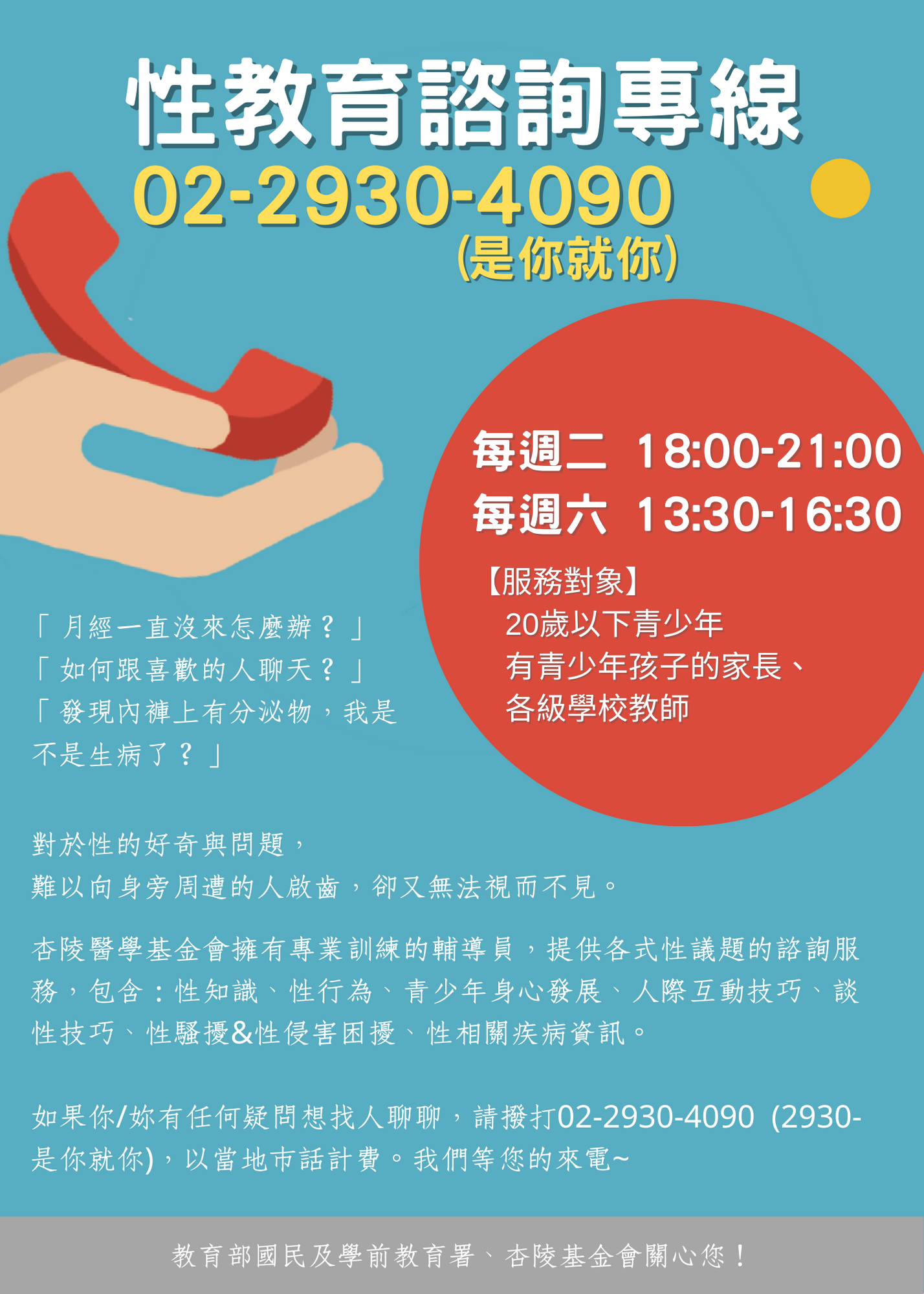 二、性教育諮詢專線訊息如下: