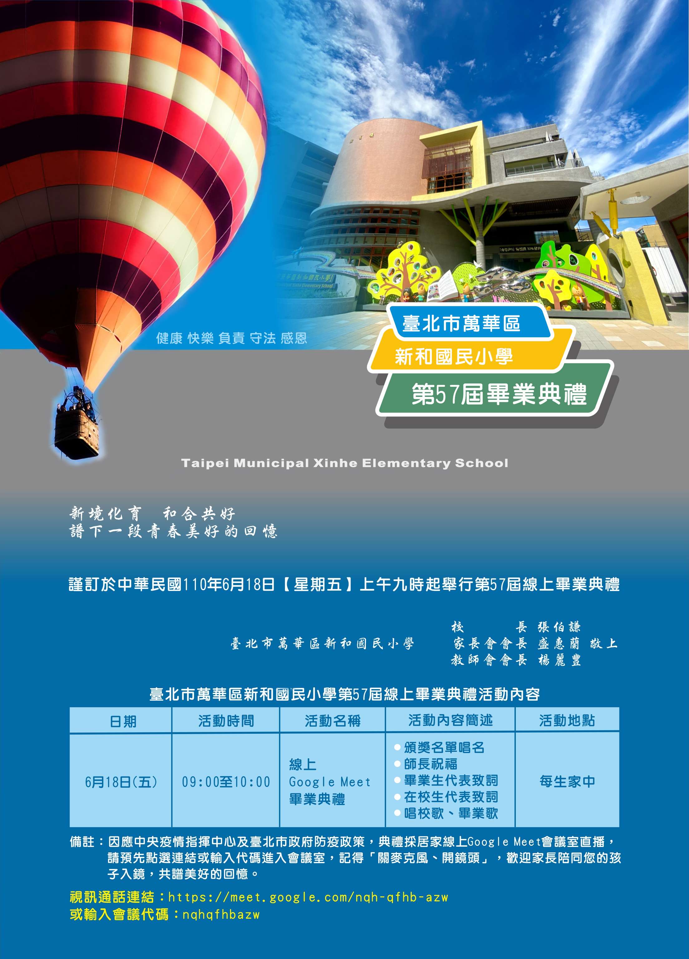 109學年度新和畢業典禮圓滿落幕,典禮錄影請點選連結至雲端觀賞或下載。