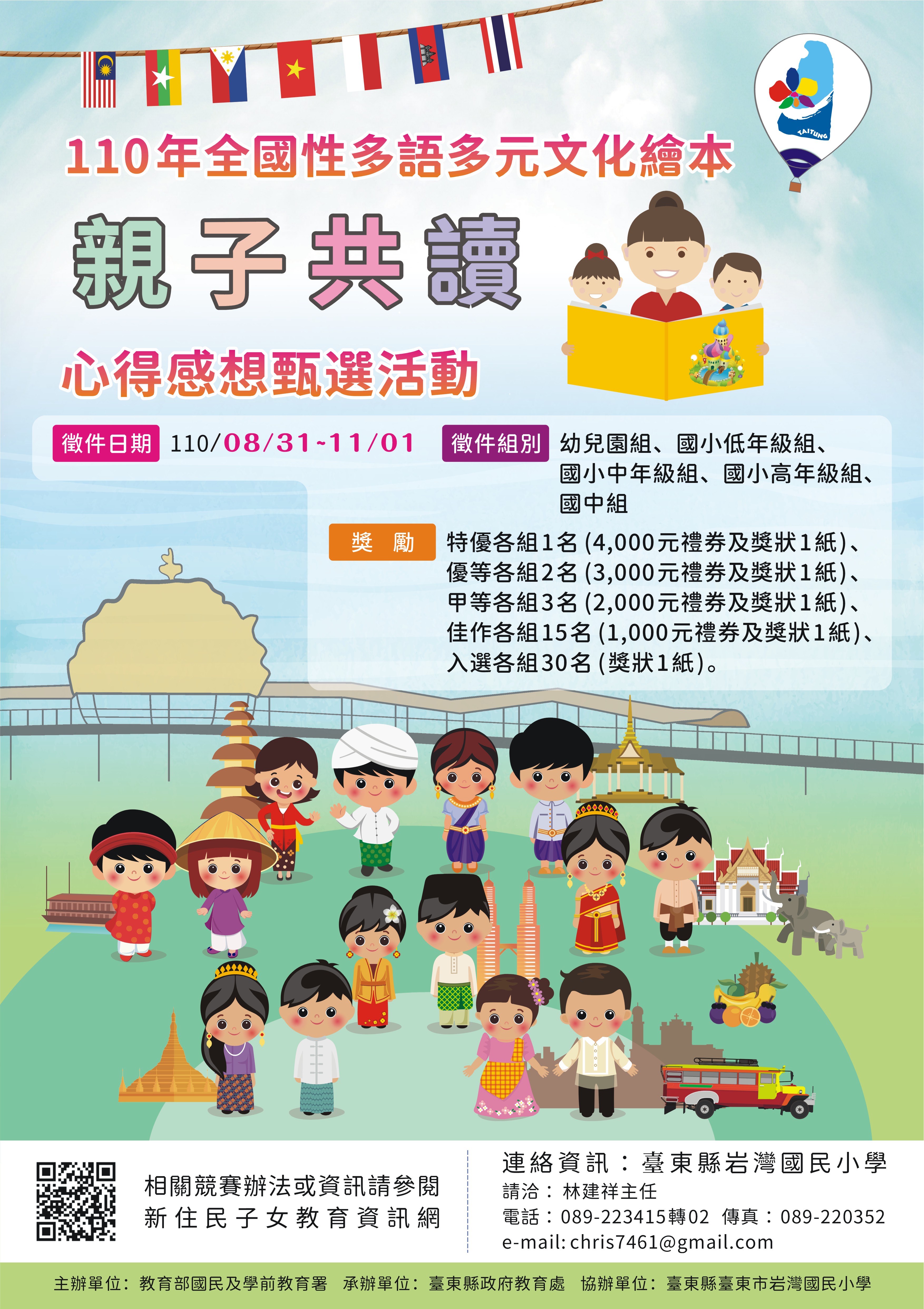 三、報名網址:請至「110年全國性多語多元文化繪本親子共讀 心得感想徵選」專屬平台(https://newres.k12ea.gov.tw /competition?cid=894)填寫報名。