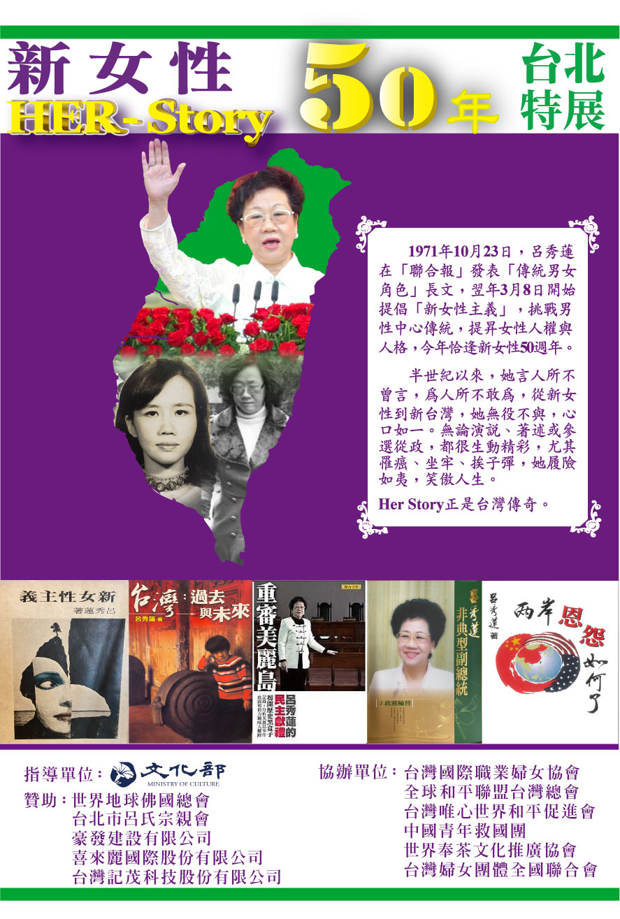 一、旨揭展覽係回顧前副總統呂秀蓮女士推動人權、婦權、民主化及國際交流歷程,有助增進民眾對臺灣民主社會發展 過程之認知;另展覽場地選定於市定古蹟樹心會館舉辦, 復具活化古蹟及推廣歷史文化場所綜效。
