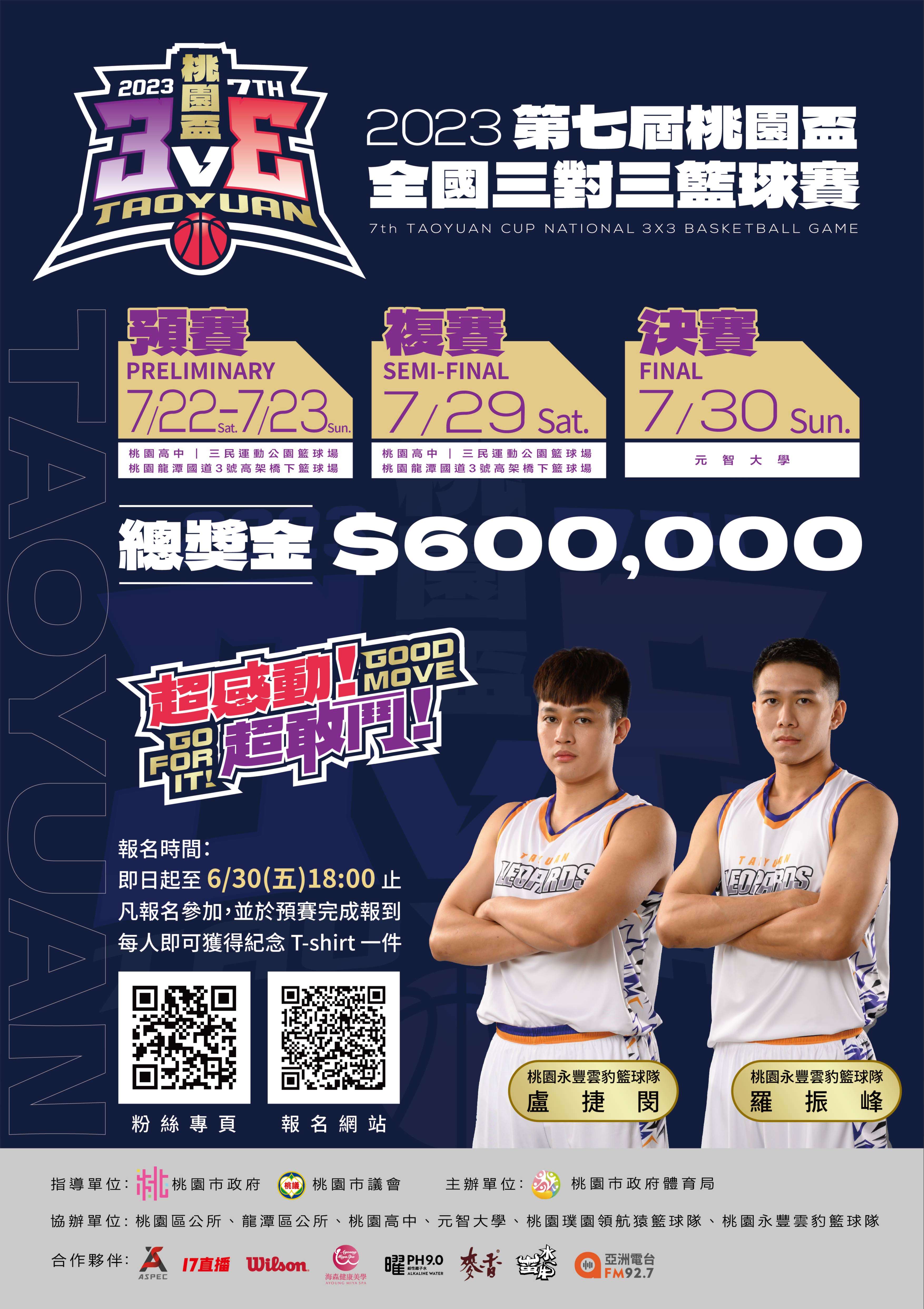 (三)活動相關細節亦可上「桃園盃全國三對三籃球賽」臉書粉絲專頁(https://www.facebook.com/TAOYUANCUP3ON3)查詢。