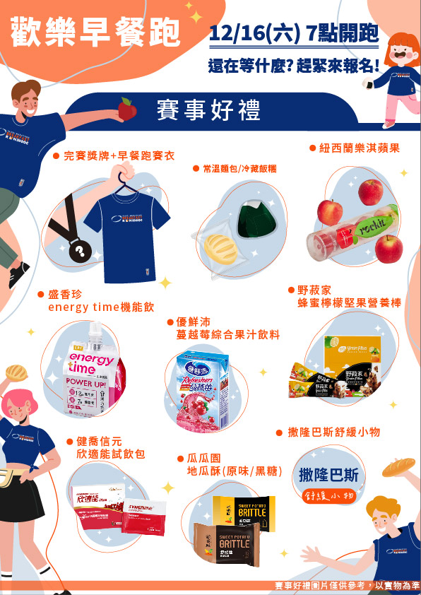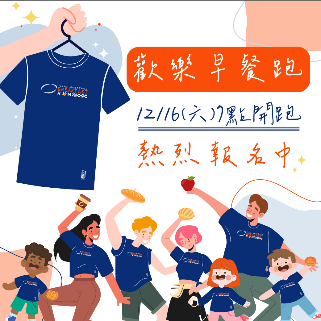 二、今(112)年首次於臺北馬拉松正式賽前1天12月16日(星期六)辦理歡樂早餐跑3公里,於上午7時假本府市民廣場起跑,沿仁愛路至仁愛圓環前折返回市民廣場終點,約5,000 名跑者參賽,適合初階跑者、親子參與及大專校院學生等參加。