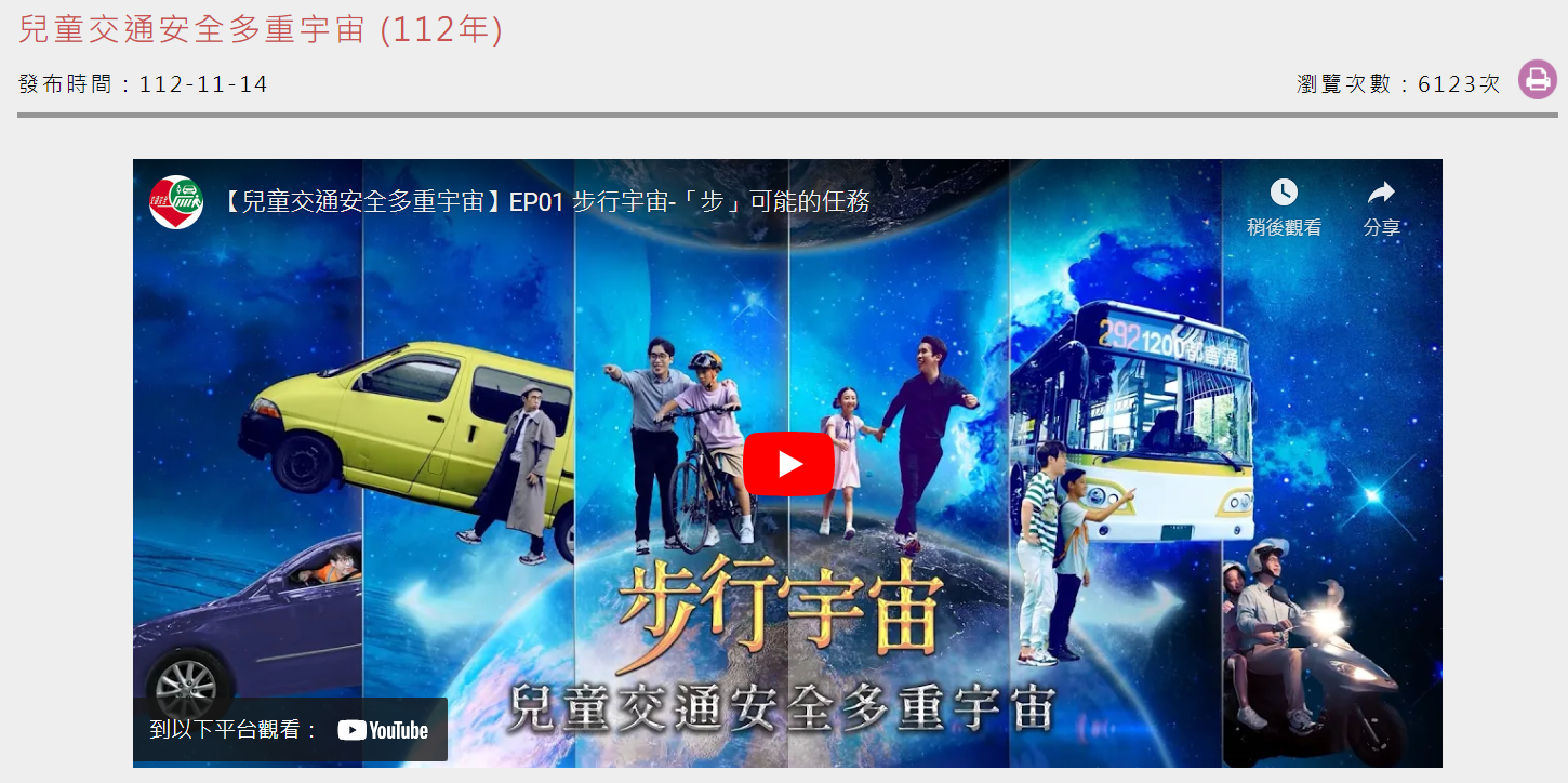 交通部為維護兒童交通安全並將交通安全教育扎根於家庭教育,爰從家長的角度製作6支兒童常見的交通情境系列短