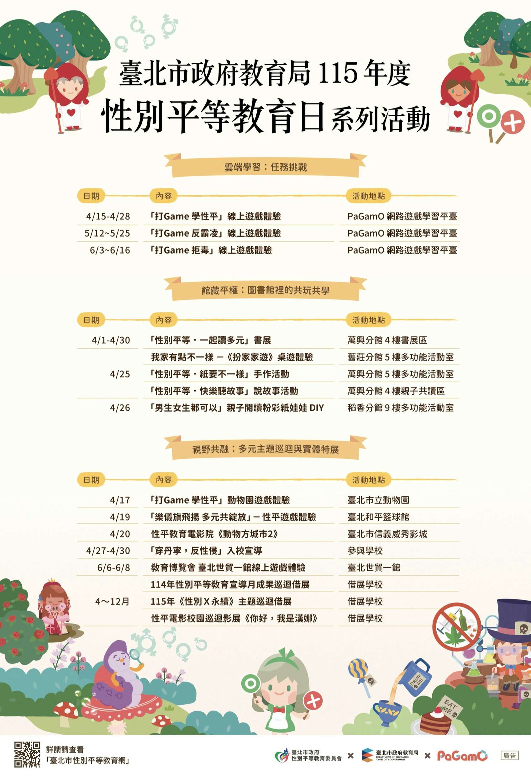 115年度性別平等教育日,鼓勵親師生參與相關活 動。