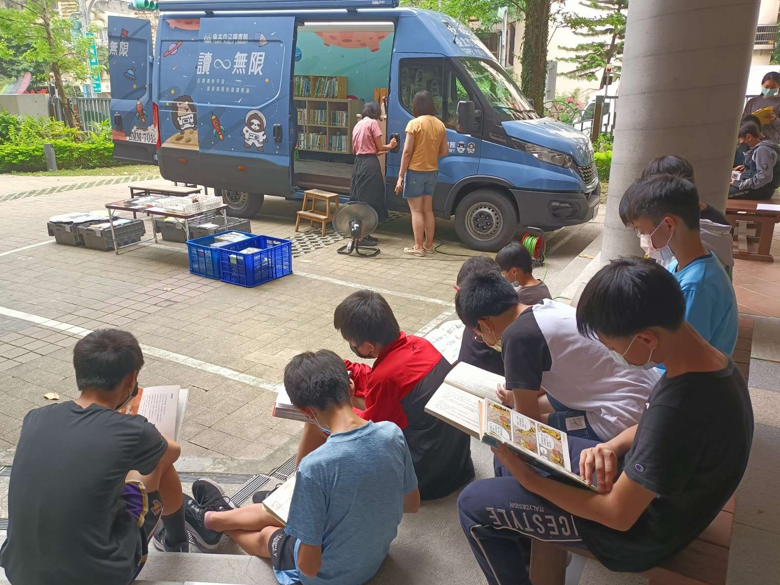 1.行動書車:4/25(二)上午第1節-第4節 第一節-603班、303班 第二節-402班、401班 第三節-202班、104班、可愛班 第四節-205班、203班 (1)活動當天,請老師準時帶領學生到【101班教室外的空地(停車場)】參加行動書車活動。 (2)請學生自備【童軍椅】到場閱讀。