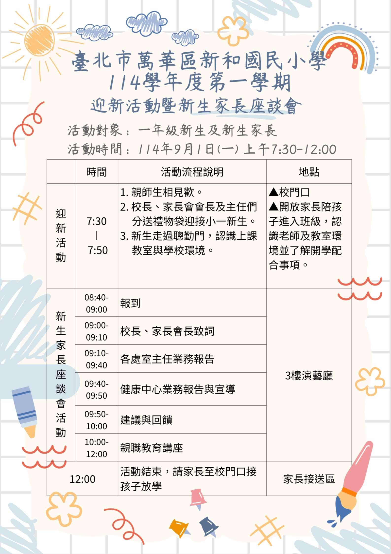 1. A4表單:請家長填寫後於9/3(三)前交給導師統整,各班自行留存保管。